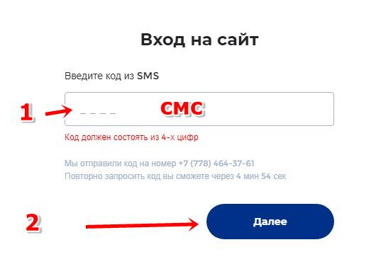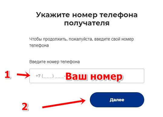 Далее укажите свой действующий номер, на который придет одноразовый пароль